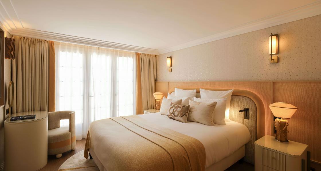 Tel un hommage au soleil éternel du Cap d'Antibes, les décors des Chambres Classiques se métamorphosent au fil de la journée, s'illuminant de reflets dorés. À travers un mobilier aux lignes douces et épurées, des textures naturelles et des couleurs légères agrémentées de touches dorées une atmosphère résolument solaire se déploie.